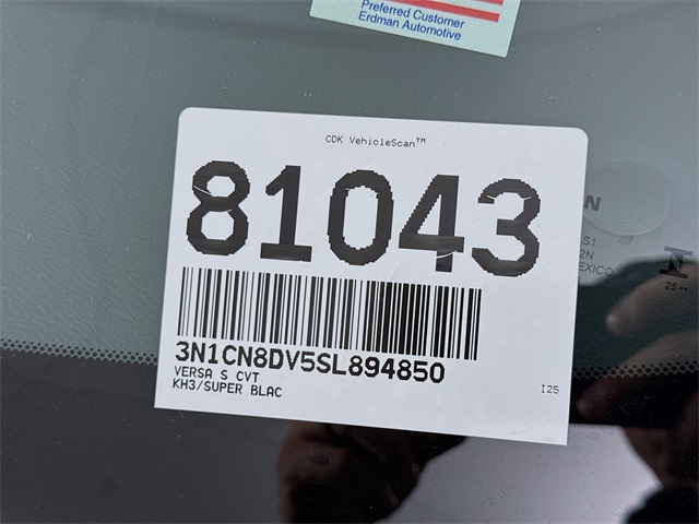 Super Black Metallic 2025 Nissan Versa 1.6 S FWD CVT 1.6L I4 DOHC 16V