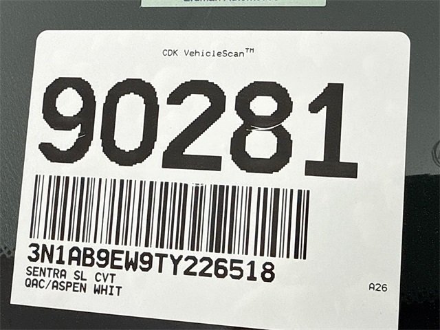Aspen White Tricoat 2026 Nissan Sentra SL FWD CVT with Xtronic 2.0L I4 DOHC