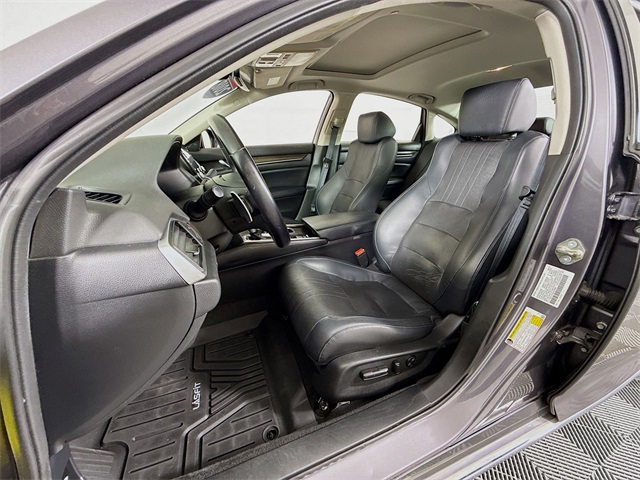 BLUETOOTH, REAR BACK UP CAMERA, LEATHER SEATING, HEATED SEATS, MOONROOF, LOCAL TRADE, FRESH OIL CHANGE, Black w/Leather-Trimmed Seats, Navigation System. Honda 2018 Accord Modern Steel Metallic Touring