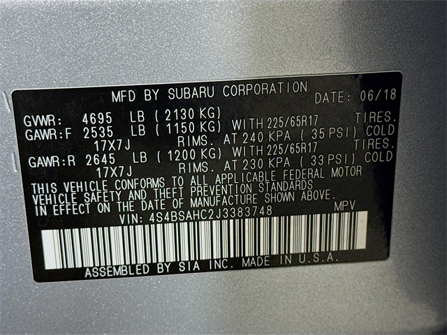 BLUETOOTH, REAR BACK UP CAMERA, LEATHER SEATING, LOCAL TRADE, FRESH OIL CHANGE, All-Weather Floor Liners, Auto-Dimming Exterior Mirror w/Approach Light, Auto-Dimming Rear View Compass Mirror w/HomeLink, Blind Spot Detection (BSD), EyeSight & MR & PRG & Navi & BSD & RCTA & HBA, High Beam Assist (HBA), Map & Dome Lights LED Upgrade, Popular Package #2, Power Moonroof Package, Power Rear Gate w/Automatic Close & Height Memory, Radio: Subaru STARLINK 8.0" Multimedia Nav System, Rear Bumper Cover, Rear Cross Traffic Alert (RCTA), Rear Seatback Protector, Smartphone Integration, Splash Guards, Vehicle Information Display. Subaru 2018 Outback Ice Silver Metallic 2.5i Premium
