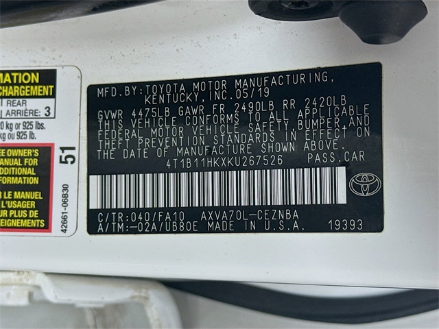 BLUETOOTH, REAR BACK UP CAMERA, LOCAL TRADE, FRESH OIL CHANGE, Black w/Fabric Seat Trim, ABS brakes, Active Cruise Control, Alloy wheels, Electronic Stability Control, Illuminated entry, Low tire pressure warning, Navigation System, Remote keyless entry, Traction control. Toyota 2019 Camry Super White LE