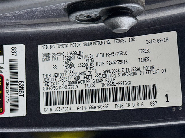 BLUETOOTH, REAR BACK UP CAMERA, APPLE/ANDROID CAR PLAY, ABS brakes, Active Cruise Control, Chrome Rear Bumper, Daytime Running Lamps, Electronic Stability Control, Front Fog Lamps, Illuminated entry, Low tire pressure warning, Remote keyless entry, Remote Keyless Entry System, SR5 Package, Traction control, Variable Intermittent Wipers. Toyota 2019 Tacoma Magnetic Gray Metallic SR5