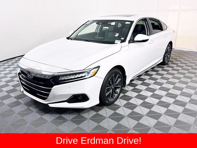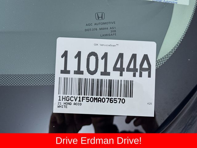 BLUETOOTH, REAR BACK UP CAMERA, LEATHER SEATING, MOONROOF, LOCAL TRADE, FRESH OIL CHANGE, Black w/Leather-Trimmed Seats. Honda 2021 Accord White EX-L