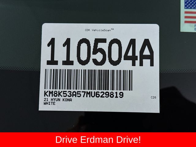BLUETOOTH, REAR BACK UP CAMERA, APPLE/ANDROID CAR PLAY, LANE DEPARTURE WARNING, MOONROOF, LOCAL TRADE, FRESH OIL CHANGE, Navigation System, Option Group 01. Hyundai 2021 Kona Chalk White Ultimate