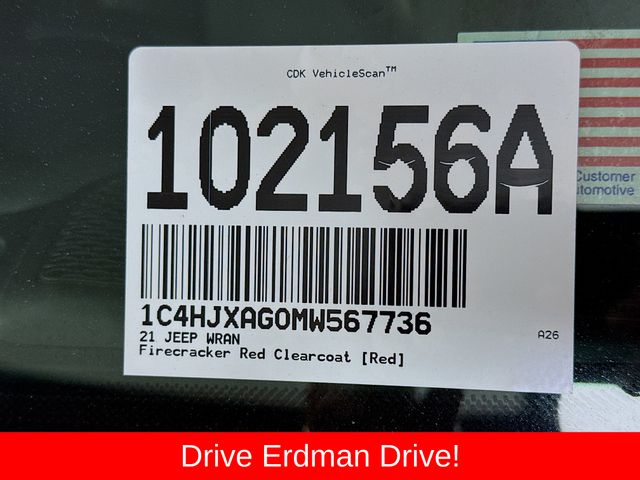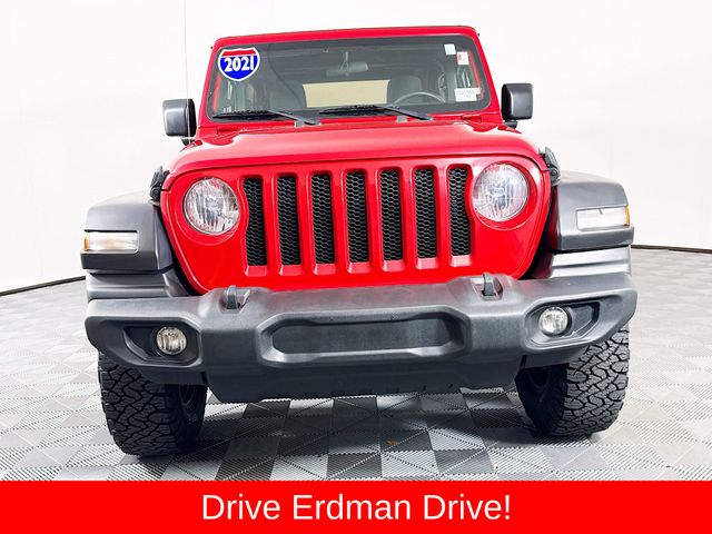 BLUETOOTH, REAR BACK UP CAMERA, APPLE/ANDROID CAR PLAY, LOCAL TRADE, FRESH OIL CHANGE, CARFAX ONE OWNER VEHICLE, 240 Amp Alternator, 7 & 4 Pin Wiring Harness, 7.0" Touchscreen Display, 700 Amp Maintenance Free Battery, Air Conditioning, Air Conditioning w/Auto Temperature Control, Air Filtering, Apple CarPlay, Automatic Headlamps, Auxiliary Switches, Class II Receiver Hitch, Cluster 7.0" TFT Color Display, Deep Tint Sunscreen Windows, For More Info Call 800-643-2112, Front 1-Touch Down Power Windows, Google Android Auto, GPS Antenna Input, Integrated Center Stack Radio, Leather Wrapped Steering Wheel, Power Heated Mirrors, Quick Order Package 25S Sport S, R1234YF A/C Refrigerant, Radio: Uconnect 4 w/7" Display, Remote Keyless Entry, Security Alarm, SiriusXM Radio Service, SiriusXM Satellite Radio, Speed Sensitive Power Locks, Sport S, Sun Visors w/Illuminated Vanity Mirrors, Technology Group, Trailer Tow & HD Electrical Group, USB Host Flip, Wheels: 17" x 7.5" Tech Silver Aluminum. Jeep 2021 Wrangler Firecracker Red Clearcoat Sport S
