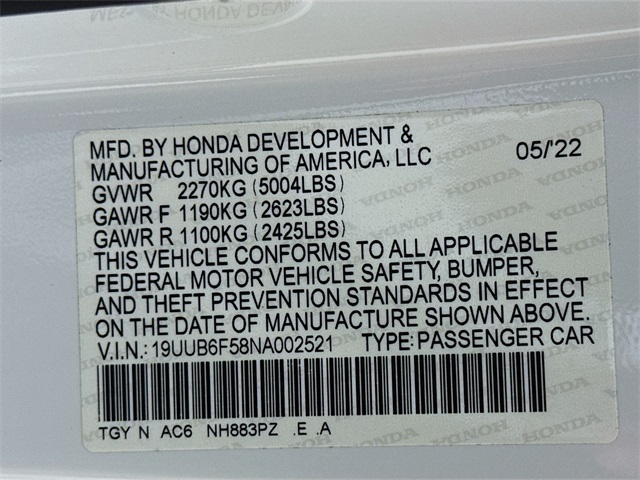 - 2L I-4 gasoline direct injection, DOHC, VTEC variable valve control, intercooled turbo, premium unleaded, engine with 272HP