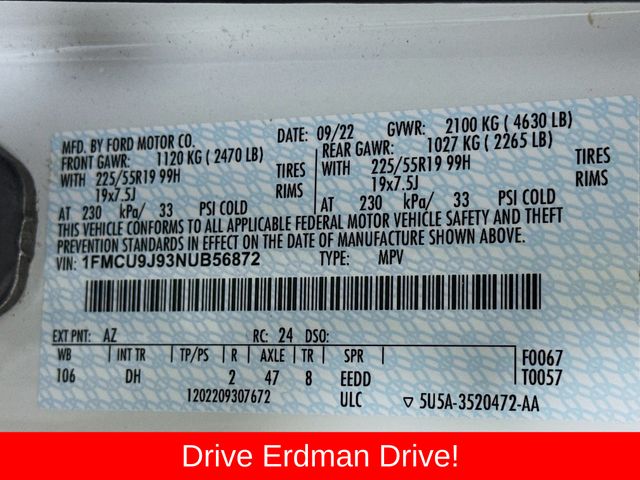 VIN 1FMCU9J93NUB56872