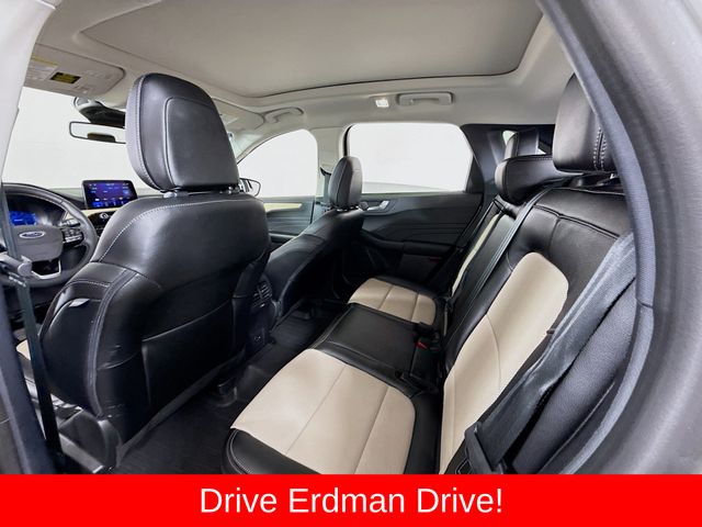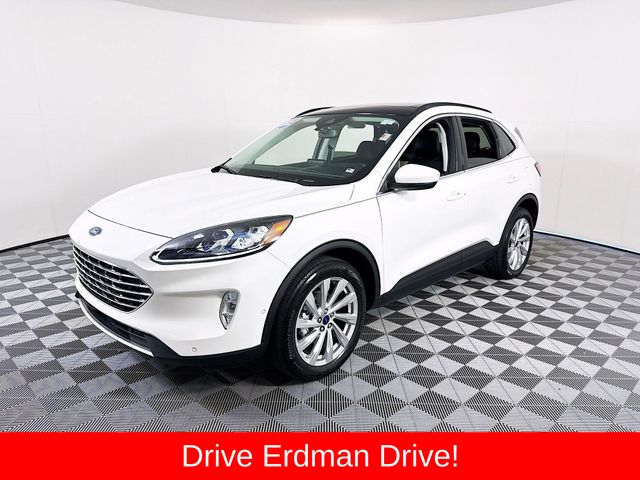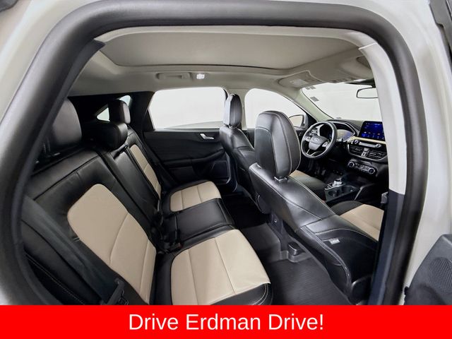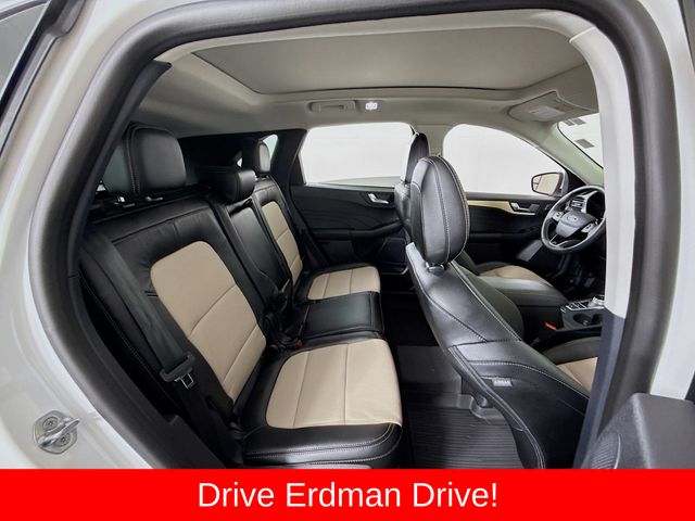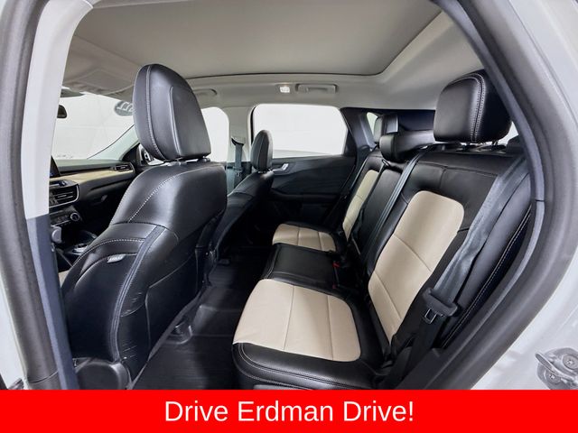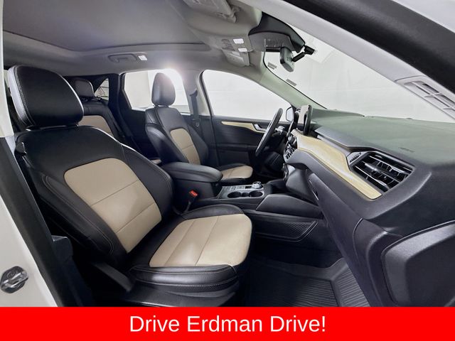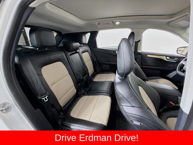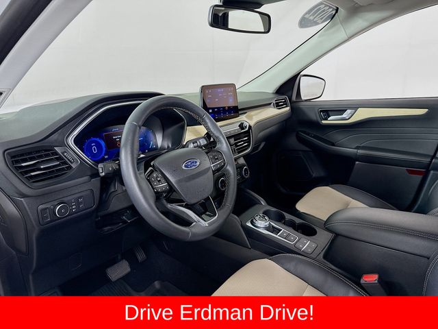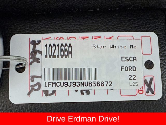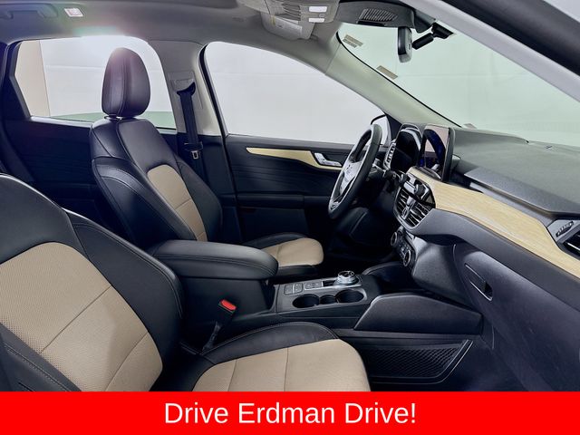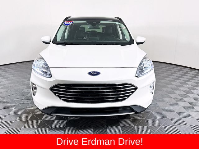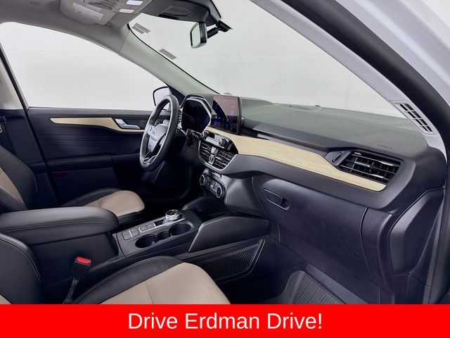 BLUETOOTH, REAR BACK UP CAMERA, APPLE/ANDROID CAR PLAY, MOONROOF, LOCAL TRADE, FRESH OIL CHANGE, CARFAX ONE OWNER VEHICLE, AWD, Active Park Assist 2.0, Chrome 5-Bar Upper Grille w/Chrome Surround, Equipment Group 401A, Front & Rear Floor Mats, Front & Rear Silver Skid Plates, HD Radio, Head-Up Display, Heated Leather-Trimmed Front Sport Contour Seats, Leather Wrapped Steering Wheel, Navigation System, Radio: B&O Sound System by Bang & Olufsen, Titanium Elite Package, Wheels: 19" Luster Nickel-Painted Aluminum, Wireless Charging Pad. Ford 2022 Escape White Metallic Titanium
