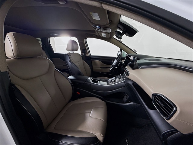 BLUETOOTH, REAR BACK UP CAMERA, APPLE/ANDROID CAR PLAY, LANE DEPARTURE WARNING, LEATHER SEATING, HEATED SEATS, LOCAL TRADE, FRESH OIL CHANGE, Beige Leather. Hyundai 2022 Santa Fe Quartz White Limited