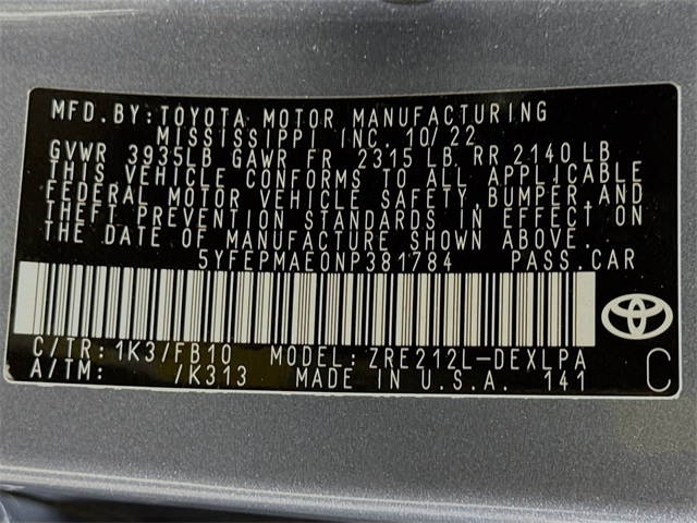 - 1.8L I-4 DOHC, VVT-i variable valve control, regular unleaded, engine with 139HP