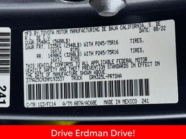 BLUETOOTH, REAR BACK UP CAMERA, APPLE/ANDROID CAR PLAY, LEATHER SEATING, HEATED SEATS, LOCAL TRADE, FRESH OIL CHANGE, CLEAN CARFAX NO ACCIDENTS REPORTED, ABS brakes, Active Cruise Control, Alloy wheels, Electronic Stability Control, Front dual zone A/C, Illuminated entry, Low tire pressure warning, Remote keyless entry, Traction control. Toyota 2022 Tacoma Magnetic Gray Metallic SR5 V6