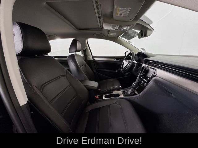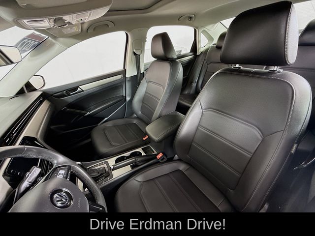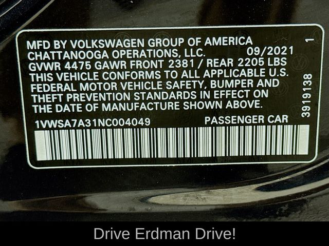 New Price! Deep Black 2022 Volkswagen Passat 2.0T SE FWD 6-Speed Automatic with Tiptronic 2.0L I4 TSI Turbocharged CLEAN CARFAX, LOCAL TRADE, Titan Black Artificial Leather, 6 Speakers, Air Conditioning, Alloy wheels, AM/FM radio: SiriusXM, Auto-dimming Rear-View mirror, Automatic temperature control, Bumpers: body-color, Delay-off headlights, Driver door bin, Driver vanity mirror, Exterior Parking Camera Rear, Four wheel independent suspension, Front Bucket Seats, Front Center Armrest, Front dual zone A/C, Front reading lights, Fully automatic headlights, Heated door mirrors, Heated Front Comfort Seats, Heated front seats, Illuminated entry, Leather Shift Knob, Leather steering wheel, Outside temperature display, Overhead console, Passenger door bin, Passenger vanity mirror, Perforated V-Tex Leatherette Seating Surfaces, Power door mirrors, Power driver seat, Power moonroof, Power steering, Power windows, Radio data system, Radio: Composition Media w/Touchscreen, Rain sensing wipers, Rear reading lights, Rear seat center armrest, Rear window defroster, Remote keyless entry, Speed-sensing steering, Split folding rear seat, Steering wheel mounted audio controls, Tachometer, Telescoping steering wheel, Tilt steering wheel, Traction control, Trip computer, Turn signal indicator mirrors, Variably intermittent wipers, Wheels: 18" x 8J 5-Spoke 2-Tone Machined Alloy.