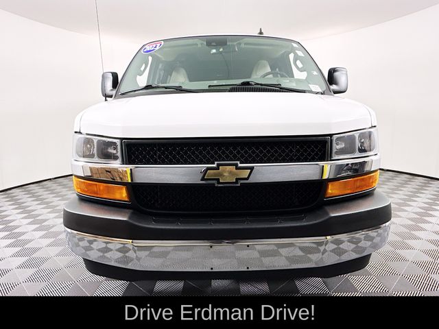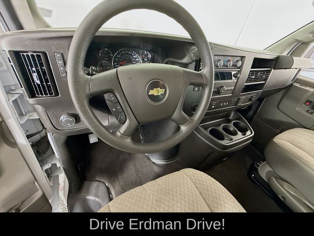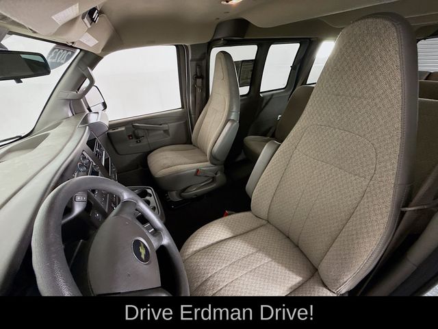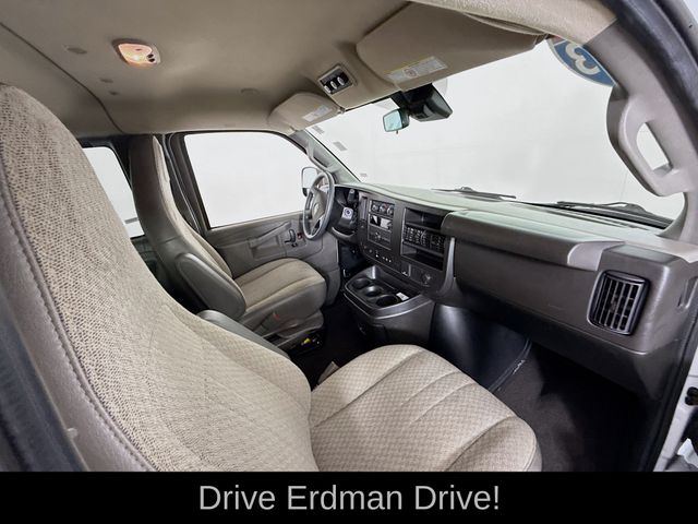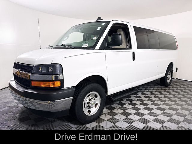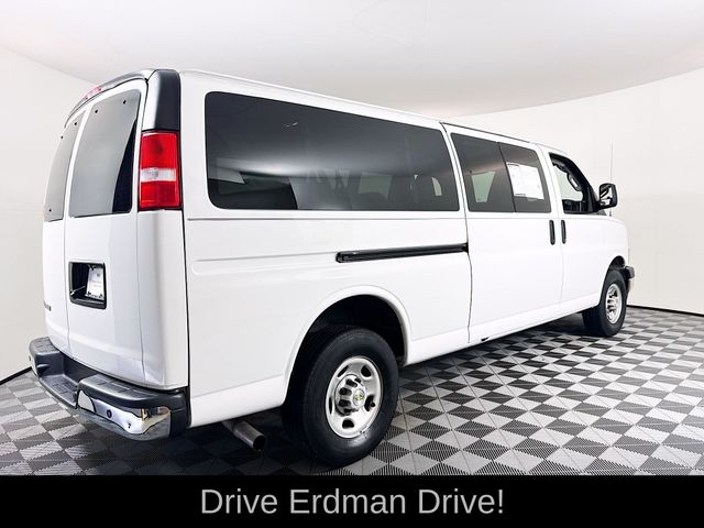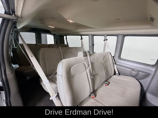 New Price! Summit White 2023 Chevrolet Express 3500 LT Passenger RWD 8-Speed Automatic with Overdrive 4.3L V6 CLEAN CARFAX, ONE OWNER, NO ACCIDENTS, 4-Wheel Disc Brakes, Air Conditioning, AM/FM radio, AM/FM Stereo w/MP3 Player, Chrome Appearance Package, Chrome Grille, Delay-off headlights, Deluxe Console w/Swing Out Storage Bin, Electric Rear-Window Defogger, Emergency communication system: OnStar and Chevrolet connected services capable, Forward Collision Alert, Front & Rear Chrome Bumpers w/Step-Pad, Front wheel independent suspension, Full-Floor Color-Keyed Carpeting, Fully automatic headlights, Lane Departure Warning System, Low tire pressure warning, Occupant sensing airbag, Overhead airbag, Passenger cancellable airbag, Power steering, Power windows, Preferred Equipment Group 1LT, Rear air conditioning, Rear Park Assist, Remote Keyless Entry, Remote keyless entry, Sliding Passenger-Side Door, Theft Alarm Notification, Traction control, Wheel Trim w/Chrome Center Caps.