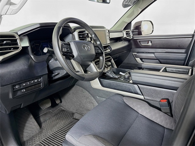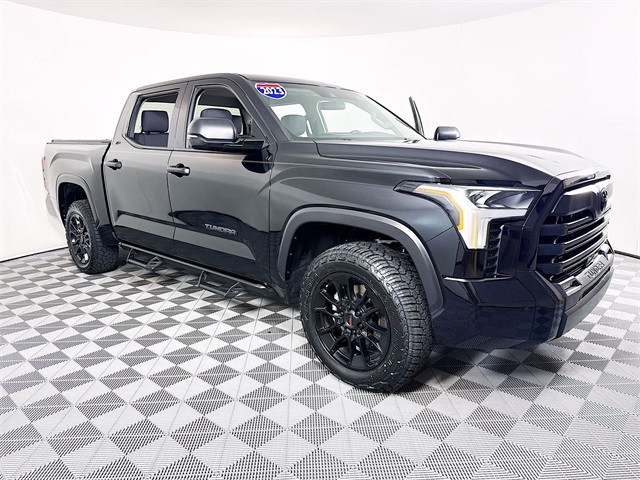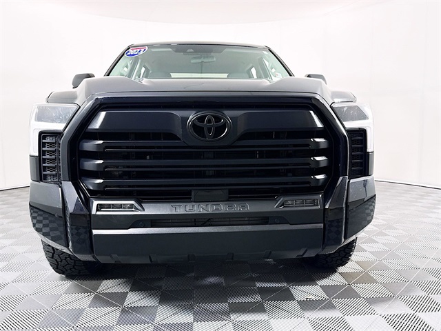 BLUETOOTH, REAR BACK UP CAMERA, APPLE/ANDROID CAR PLAY, LANE DEPARTURE WARNING, LOCAL TRADE, FRESH OIL CHANGE, CARFAX ONE OWNER VEHICLE, 4WD, Black w/Fabric Seat Trim. Toyota 2023 Tundra Midnight Black Metallic SR5