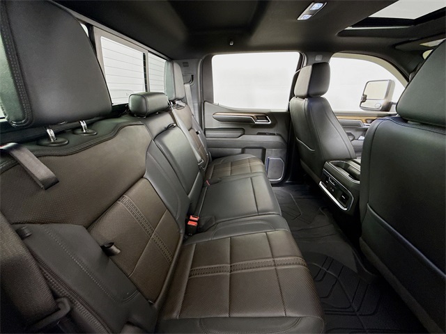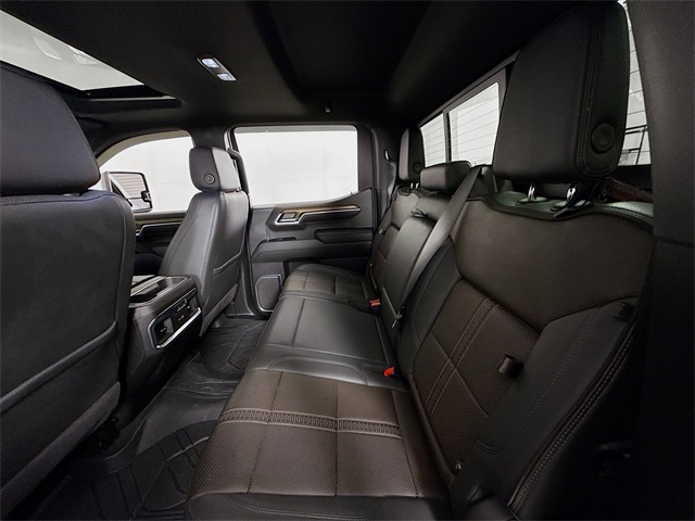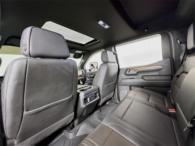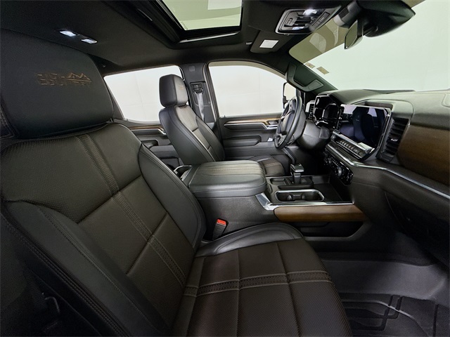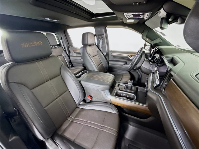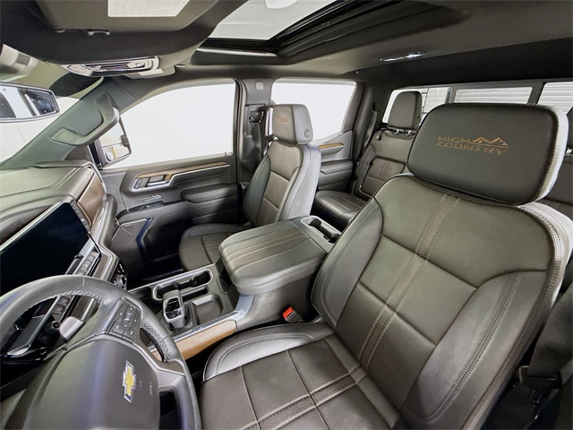 Sterling Gray Metallic 2024 Chevrolet Silverado 1500 High Country 4WD 10-Speed Automatic EcoTec3 5.3L V8 10-Speed Automatic, 4WD, Jet Black Leather, 10-Way Power Driver Seat w/Lumbar, 10-Way Power Passenger Seat Adjuster w/Lumbar, 12.3" Multicolor Reconfigurable Digital Display, 120-Volt Bed Mounted Power Outlet, 120-Volt Interior Power Outlet, 2 USB Data Ports, 2nd Row Heated Outboard Seats, Adaptive Cruise Control, All-Weather Floor Liner (LPO), Auto-Dimming Inside Rear-View Mirror, Auto-Locking Rear Differential, Bed View Camera, Bluetooth® For Phone, Body-Color Painted Mirror Caps, Chevrolet Connected Access Capable, Chevytec Spray-On Black Bedliner, Chrome Assist Steps, Chrome Recovery Hooks, Color-Keyed Carpeting Floor Covering, Deep-Tinted Glass, Driver Memory, Dual Exhaust w/Polished Outlets, Dual Rear USB Ports (Charge Only), Electric Rear-Window Defogger, Electrical Steering Column Lock, EZ Lift Power Lock & Release Tailgate, Floor Mounted Center Console, Front Carpeted Floor Mats, Front LED Fog Lamps, Front Rain-Sensing Wipers, HD Surround Vision, Heated Driver & Front Outboard Passenger Seats, Heated Steering Wheel, High Capacity Suspension Package, High Country Premium Package, Hitch Guidance, Hitch Guidance w/Hitch View, In-Vehicle Trailering System App, Integrated Trailer Brake Controller, Keyless Open & Start, Lane Keep Assist w/Lane Departure Warning, LED Cargo Area Lighting, OnStar & Chevrolet Connected Services Capable, Outside Heated Power-Adjustable Mirrors, Perimeter Lighting, Power Front Passenger Windows w/Express Up/Down, Power Front Windows w/Driver Express Up/Down, Power Rear Windows w/Express Down, Power Sliding Rear Window w/Rear Defogger, Power Sunroof, Power Tailgate, Power Tilt & Telescoping Steering Column, Preferred Equipment Group 3LZ, Premium audio system: Chevrolet Infotainment 3 Premium, Rear Carpeted Floor Mats, Rear Cross Traffic Braking, Rear Pedestrian Alert, Rear Wheelhouse Liners, Remote Vehicle Starter System, Safety Alert Seat, SiriusXM w/360L, Standard Tailgate, Steering Wheel Audio Controls, Theft Deterrent System (Unauthorized Entry), Trailer Camera Provisions, Trailer Side Blind Zone Alert, Trailering Package, Ultrasonic Front & Rear Park Assist, Universal Home Remote, Up-Level Rear Seat w/Storage Package, Ventilated Driver & Front Passenger Seats, Wheels: 22" x 9" Painted Aluminum, Wi-Fi Hot Spot Capable, Wrapped Steering Wheel.