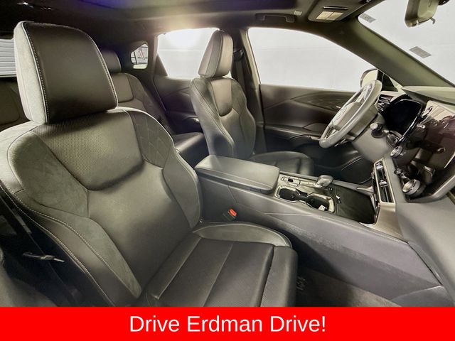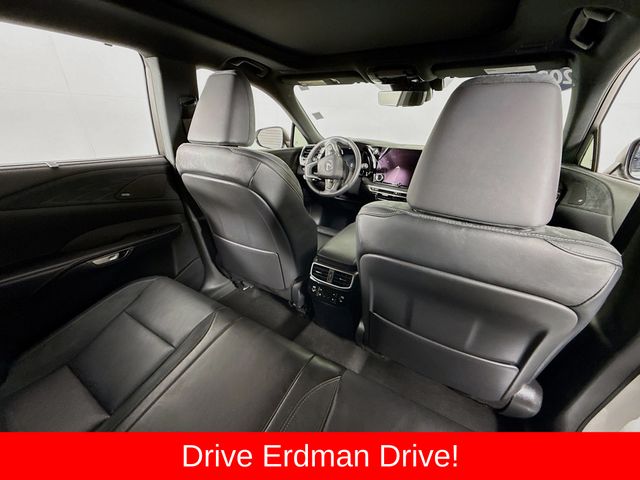 Step inside and you'll be greeted by a spacious and meticulously crafted cabin, featuring premium leather seating, a heated steering wheel, and a 14-inch touchscreen display with navigation and a premium Mark Levinson audio system. The power-adjustable front seats with memory settings and ventilated front and rear seats ensure maximum comfort for you and your passengers.