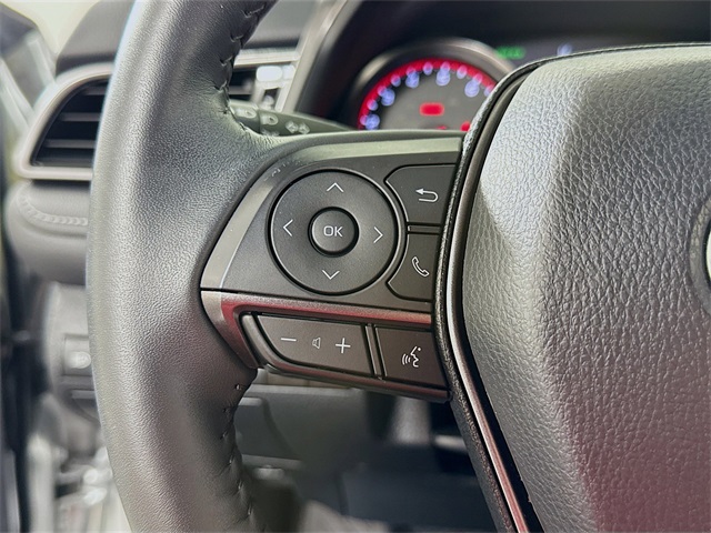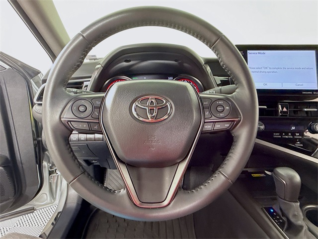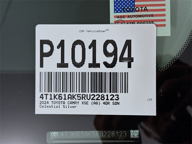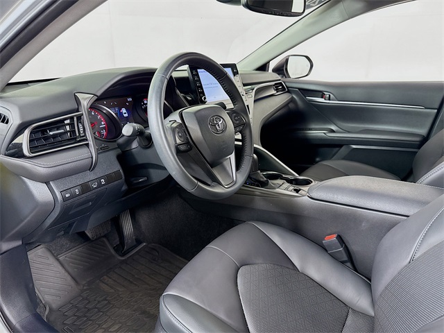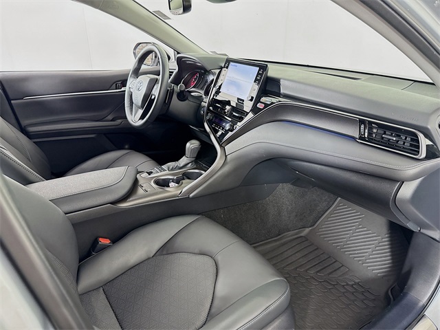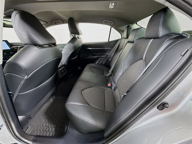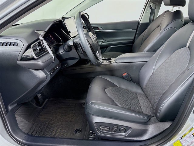BLUETOOTH, REAR BACK UP CAMERA, APPLE/ANDROID CAR PLAY, BLIND SPOT MONORITING, LANE DEPARTURE WARNING, LEATHER SEATING, HEATED SEATS, MOONROOF, LOCAL TRADE, FRESH OIL CHANGE, CARFAX ONE OWNER VEHICLE, Black w/Sport SofTex Seat Trim w/Fabric Inserts. Toyota 2024 Camry Celestial Silver XSE
