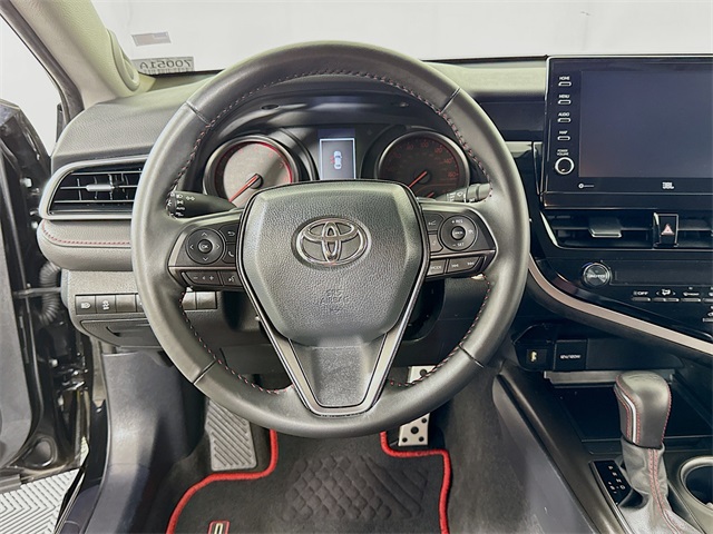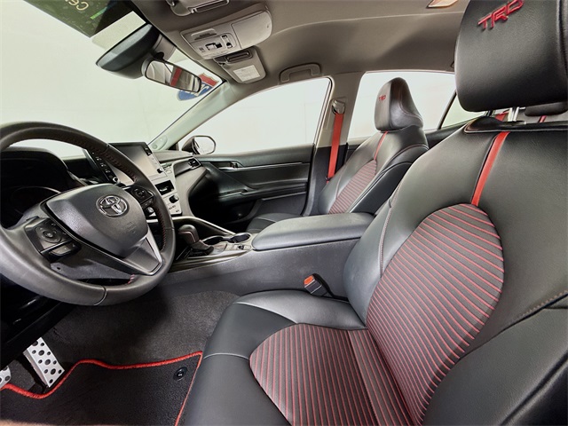 New Price! Black 2024 Toyota Camry TRD V6 FWD 8-Speed Automatic 3.5L V6 DOHC 24V LOCAL TRADE, CLEAN CARFAX, Black w/Perforated Leather Seat Trim, 6 Speakers, ABS brakes, Active Cruise Control, Air Conditioning, Alloy wheels, AM/FM radio: SiriusXM, Apple CarPlay/Android Auto, Auto High-beam Headlights, Automatic temperature control, Bumpers: body-color, Delay-off headlights, Driver door bin, Driver vanity mirror, Electronic Stability Control, Front dual zone A/C, Front reading lights, Fully automatic headlights, Heated door mirrors, Illuminated entry, Leather Shift Knob, Leather steering wheel, Low tire pressure warning, Outside temperature display, Overhead console, Passenger vanity mirror, Power door mirrors, Preferred Accessory Package w/All Weather Liners (TMS), Radio data system, Radio: Audio, Radio: Audio Plus w/JBL, Rear window defroster, Remote keyless entry, Speed control, Spoiler, Steering wheel mounted audio controls, Traction control, TRD Package w/JBL Audio, Turn signal indicator mirrors, Wheels: 19" x 8.5J Alloy.