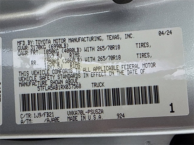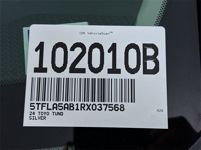 BLUETOOTH, REAR BACK UP CAMERA, APPLE/ANDROID CAR PLAY, LANE DEPARTURE WARNING, LOCAL TRADE, FRESH OIL CHANGE, CARFAX ONE OWNER VEHICLE, Black w/Fabric Seat Trim. Toyota 2024 Tundra Celestial Silver Metallic SR5