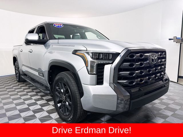 BLUETOOTH, REAR BACK UP CAMERA, APPLE/ANDROID CAR PLAY, BLIND SPOT MONORITING, LEATHER SEATING, HEATED SEATS, LOCAL TRADE, FRESH OIL CHANGE, CARFAX ONE OWNER VEHICLE, Black w/Leather Seat Trim, Navigation System. Toyota 2024 Tundra Celestial Silver Metallic Platinum