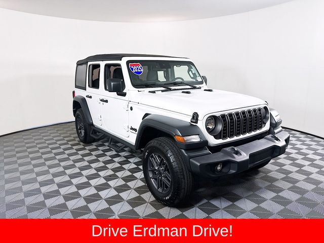 BLUETOOTH, REAR BACK UP CAMERA, APPLE/ANDROID CAR PLAY, LOCAL TRADE, FRESH OIL CHANGE, CLEAN CARFAX NO ACCIDENTS REPORTED. Jeep 2025 Wrangler Bright White Clearcoat Sport S
