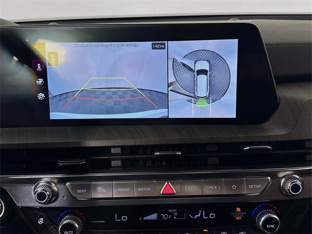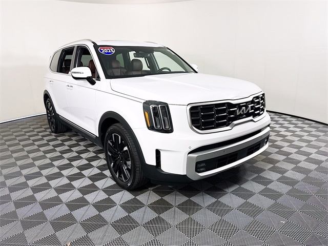 BLUETOOTH, REAR BACK UP CAMERA, APPLE/ANDROID CAR PLAY, BLIND SPOT MONORITING, LANE DEPARTURE WARNING, LEATHER SEATING, HEATED SEATS, CAPTAINS CHAIRS, MOONROOF, LOCAL TRADE, FRESH OIL CHANGE, CLEAN CARFAX NO ACCIDENTS REPORTED. Kia 2025 Telluride Glacial White Pearl SX-Prestige