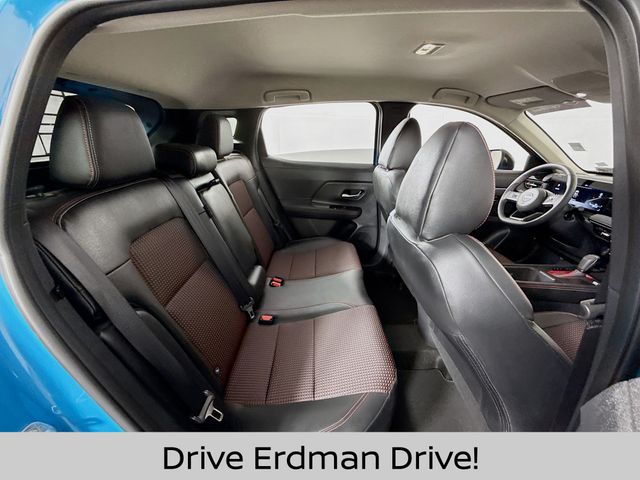 The 2025 Nissan Kicks SR is a standout compact SUV that combines style, technology, and performance in a captivating package. With its sleek, two-tone exterior and well-appointed interior, this vehicle is sure to turn heads wherever you go.