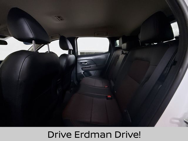 The interior of the Kicks SR is designed with the driver and passengers in mind. Featuring a range of advanced technologies, including wireless Apple CarPlay and Android Auto, the vehicle seamlessly integrates with your digital lifestyle. The leather-wrapped steering wheel and shift knob add a touch of sophistication, while the sport cloth/leatherette seat trim provides both comfort and style.