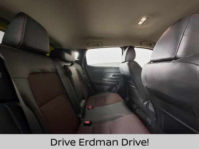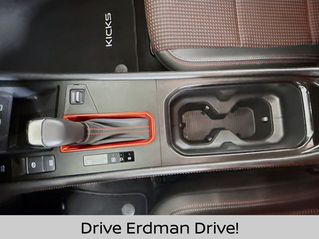 Elevate your style with the Kicks SR's premium 2-Tone Paint, Crossbars, Carpeted Floor Mats, and Splash Guards. Indulge in the convenience of Wireless Apple CarPlay/Wireless Android Auto, as well as the peace of mind provided by the vehicle's advanced safety features.