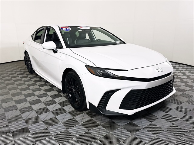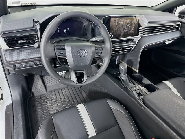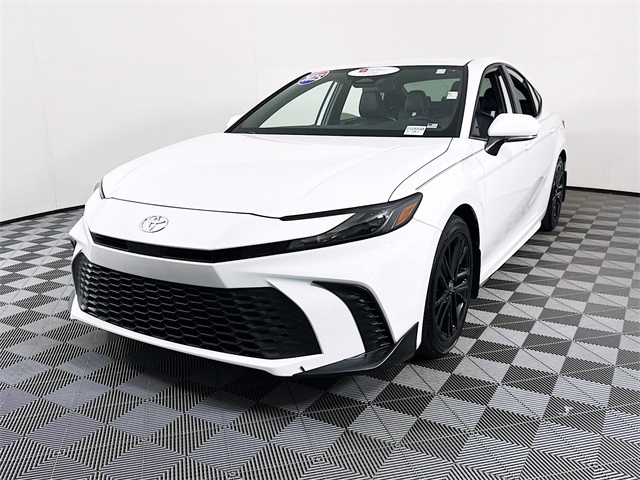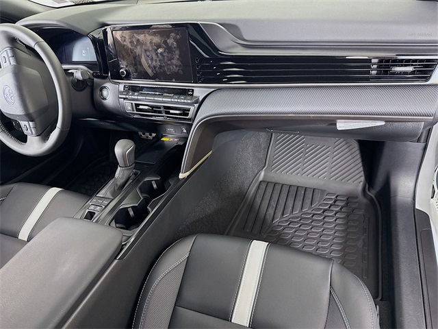BLUETOOTH, REAR BACK UP CAMERA, APPLE/ANDROID CAR PLAY, BLIND SPOT MONORITING, LANE DEPARTURE WARNING, LEATHER SEATING, LOCAL TRADE, FRESH OIL CHANGE, CARFAX ONE OWNER VEHICLE, 2.5L 4-Cylinder 16V DOHC, Black w/SofTex and Fabric Seat Trim, ABS brakes, Active Cruise Control, Alloy wheels, Electronic Stability Control, Front dual zone A/C, Heated door mirrors, Illuminated entry, Low tire pressure warning, Remote keyless entry, Traction control. Toyota 2025 Camry Ice Cap SE