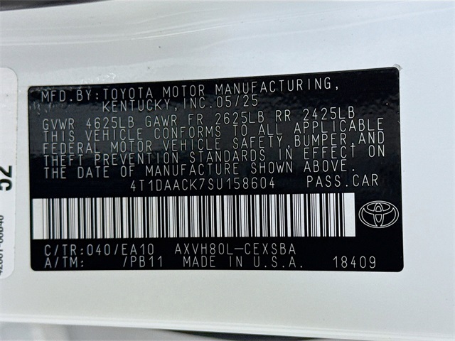 BLUETOOTH, REAR BACK UP CAMERA, APPLE/ANDROID CAR PLAY, BLIND SPOT MONORITING, LANE DEPARTURE WARNING, LOCAL TRADE, FRESH OIL CHANGE, CARFAX ONE OWNER VEHICLE, 2.5L 4-Cylinder 16V DOHC, Black w/SofTex & Fabric Seat Trim, ABS brakes, Active Cruise Control, Alloy wheels, Electronic Stability Control, Front dual zone A/C, Heated door mirrors, Illuminated entry, Low tire pressure warning, Remote keyless entry, Traction control. Toyota 2025 Camry Ice Cap SE