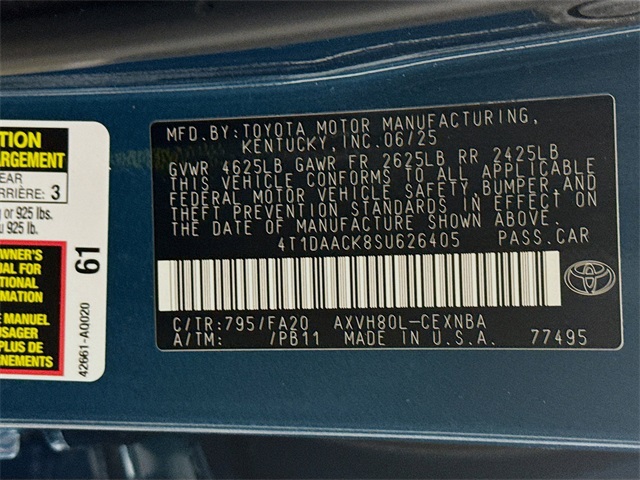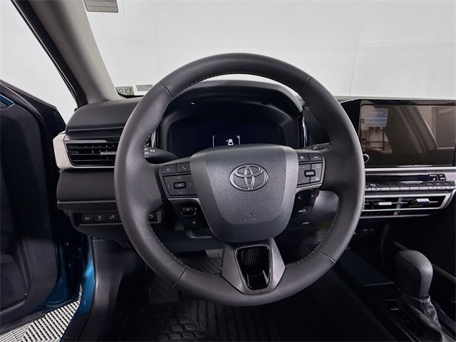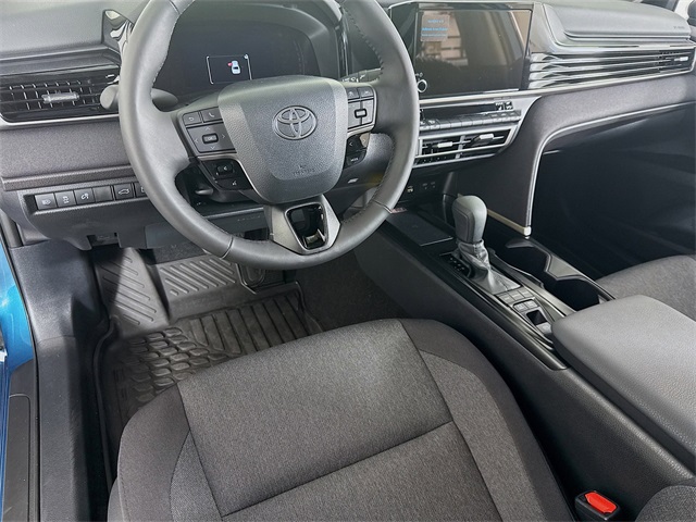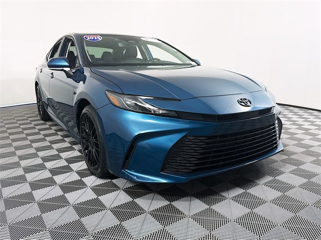 BLUETOOTH, REAR BACK UP CAMERA, APPLE/ANDROID CAR PLAY, BLIND SPOT MONORITING, LANE DEPARTURE WARNING, LOCAL TRADE, FRESH OIL CHANGE, **XP SHADOW PACKAGE**, 2.5L 4-Cylinder 16V DOHC, Black w/SofTex and Fabric Seat Trim, 8-Way Power-Adjustable Front Driver's Seat, ABS brakes, Active Cruise Control, Alloy wheels, Auto-Dimming Rearview Mirror w/HomeLink, Cold Weather Package, Convenience Package, Driver-Side Seatback Pocket, Electronic Stability Control, Front dual zone A/C, Heated door mirrors, Heated Front Seats, Illuminated entry, Leather Wrapped Heated Steering Wheel, Low tire pressure warning, Remote keyless entry, Smart Key System, Traction control. Toyota 2025 Camry Ocean Gem LE
