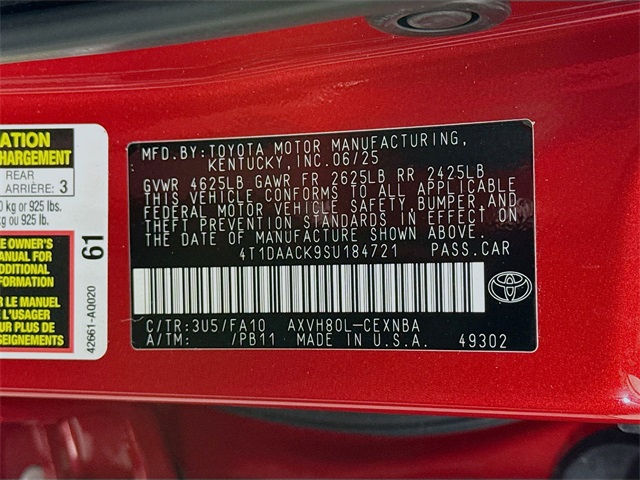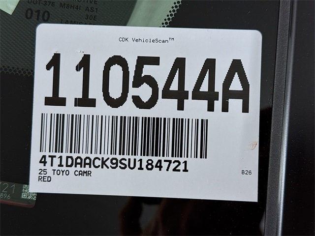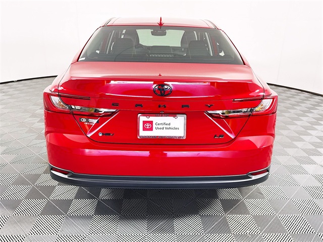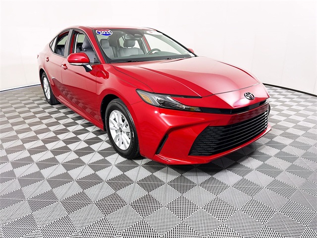 BLUETOOTH, REAR BACK UP CAMERA, APPLE/ANDROID CAR PLAY, LANE DEPARTURE WARNING, LEATHER SEATING, FRESH OIL CHANGE, CARFAX ONE OWNER VEHICLE, 2.5L 4-Cylinder 16V DOHC, Black w/Fabric Seat Trim, ABS brakes, Active Cruise Control, Alloy wheels, Electronic Stability Control, Front dual zone A/C, Heated door mirrors, Illuminated entry, Low tire pressure warning, Remote keyless entry, Traction control. Toyota 2025 Camry Supersonic Red LE