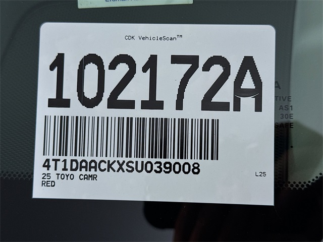 BLUETOOTH, REAR BACK UP CAMERA, APPLE/ANDROID CAR PLAY, LANE DEPARTURE WARNING, MOONROOF, LOCAL TRADE, FRESH OIL CHANGE, 2.5L 4-Cylinder 16V DOHC, Black w/Fabric Seat Trim, ABS brakes, Active Cruise Control, Alloy wheels, Electronic Stability Control, Front dual zone A/C, Heated door mirrors, Illuminated entry, Low tire pressure warning, Remote keyless entry, Traction control. Toyota 2025 Camry Supersonic Red LE