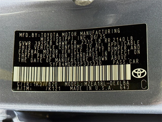 BLUETOOTH, REAR BACK UP CAMERA, APPLE/ANDROID CAR PLAY, LANE DEPARTURE WARNING, LOCAL TRADE, FRESH OIL CHANGE, CARFAX ONE OWNER VEHICLE. Toyota 2025 Corolla Gray LE