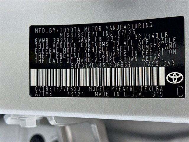 BLUETOOTH, REAR BACK UP CAMERA, APPLE/ANDROID CAR PLAY, LOCAL TRADE, FRESH OIL CHANGE, CARFAX ONE OWNER VEHICLE. Toyota 2025 Corolla Classic Silver Metallic LE