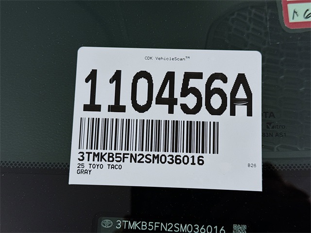 BLUETOOTH, REAR BACK UP CAMERA, APPLE/ANDROID CAR PLAY, LANE DEPARTURE WARNING, LOCAL TRADE, FRESH OIL CHANGE, CARFAX ONE OWNER VEHICLE, ABS brakes, Alloy wheels, Electronic Stability Control, Heated door mirrors, Illuminated entry, Low tire pressure warning, Remote keyless entry, Traction control, TRD Sport Package. Toyota 2025 Tacoma Celestial Silver Metallic TRD Sport