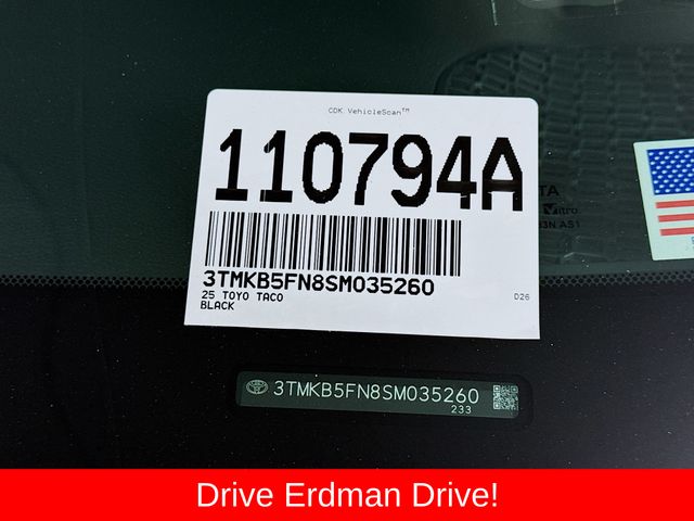 BLUETOOTH, REAR BACK UP CAMERA, APPLE/ANDROID CAR PLAY, LOCAL TRADE, FRESH OIL CHANGE, CARFAX ONE OWNER VEHICLE, ABS brakes, Alloy wheels, Electronic Stability Control, Heated door mirrors, Illuminated entry, Low tire pressure warning, Remote keyless entry, Traction control, TRD Sport Package. Toyota 2025 Tacoma Black TRD Sport