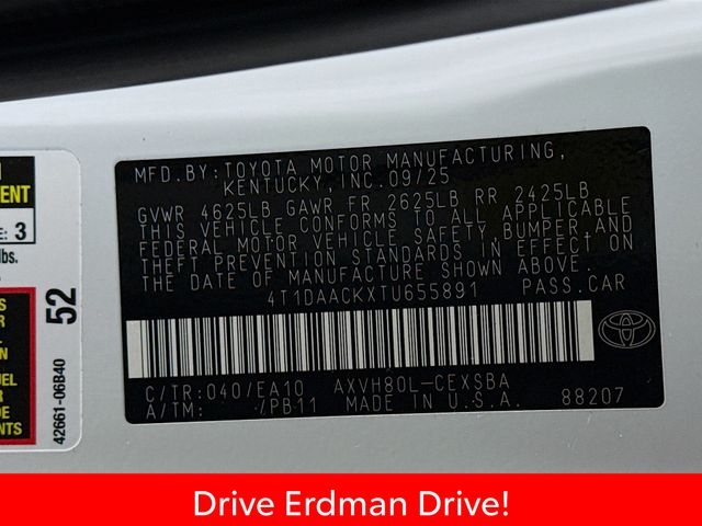 BLUETOOTH, REAR BACK UP CAMERA, APPLE/ANDROID CAR PLAY, LANE DEPARTURE WARNING, FRESH OIL CHANGE, CARFAX ONE OWNER VEHICLE, Black w/SofTex and Fabric Seat Trim, ABS brakes, Active Cruise Control, Alloy wheels, Electronic Stability Control, Front dual zone A/C, Heated door mirrors, Illuminated entry, Low tire pressure warning, Remote keyless entry, Traction control. Toyota 2026 Camry Ice Cap SE